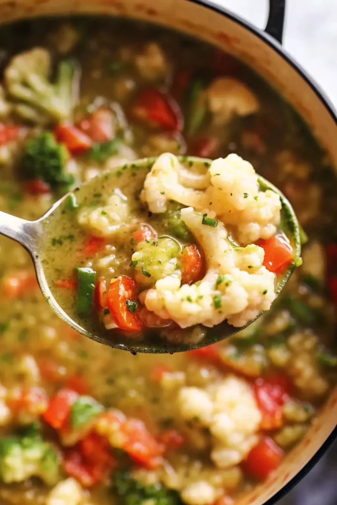 - Creamy Dairy-Free: Stir in ½ cup of full-fat coconut milk or cashew cream after blending (if blending) for a richer vegan broccoli cauliflower soup.