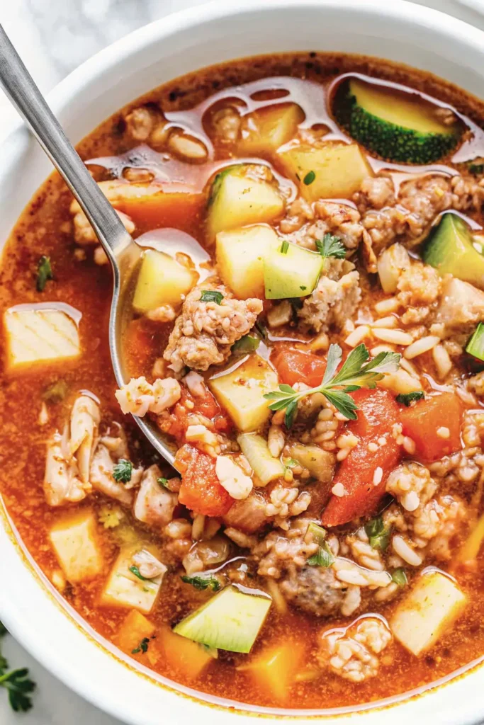 This zucchini sausage soup is essentially a rustic, quick version of a minestrone, emphasizing flavor and speed. The key is in the layering: browning the sausage first creates a savory foundation, then cooking the aromatics and tomato paste intensifies the final broth. Loaded with vegetables, protein, and satisfying flavor, this recipe proves that an easy healthy soup doesn’t have to be bland.