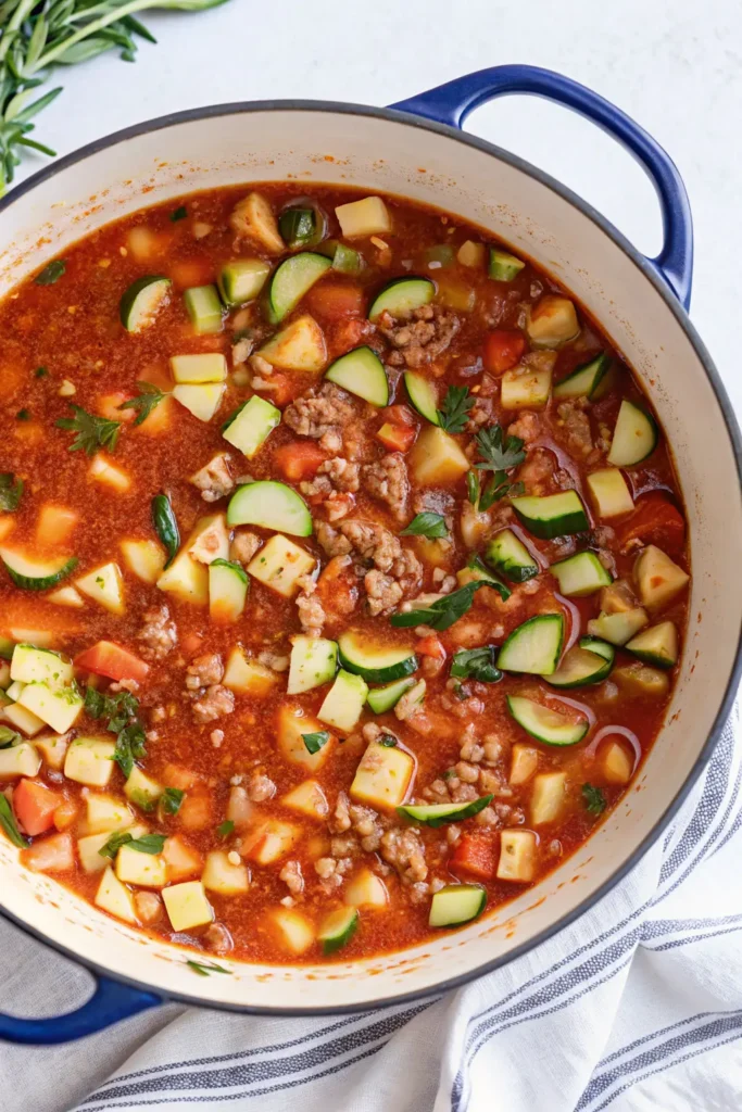 - Freezer Prep: Cook and freeze the sausage-tomato base (Steps 1–3) without the zucchini or broth. When reheating, add the broth and cook the fresh zucchini.