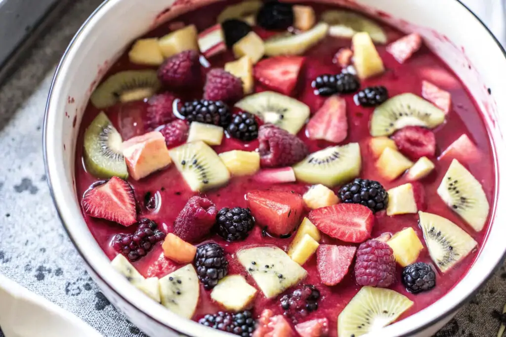 - 2 cups mixed fresh fruit (mango, kiwi, berries)