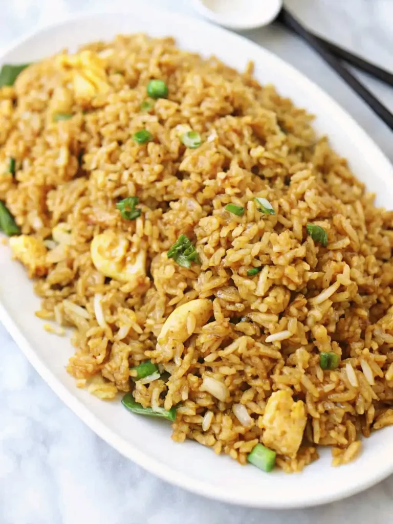 - Taste and Texture: Features perfectly separated, fluffy rice grains with a savory, umami flavor from the soy sauce, and rich bits of scrambled egg.