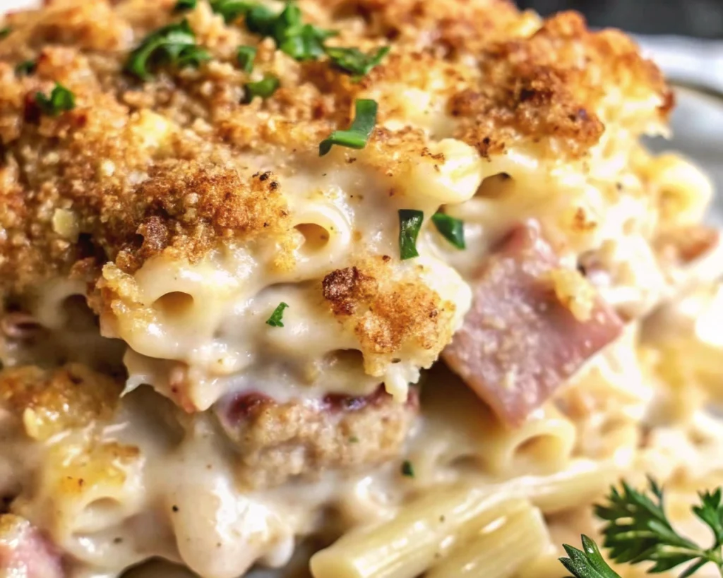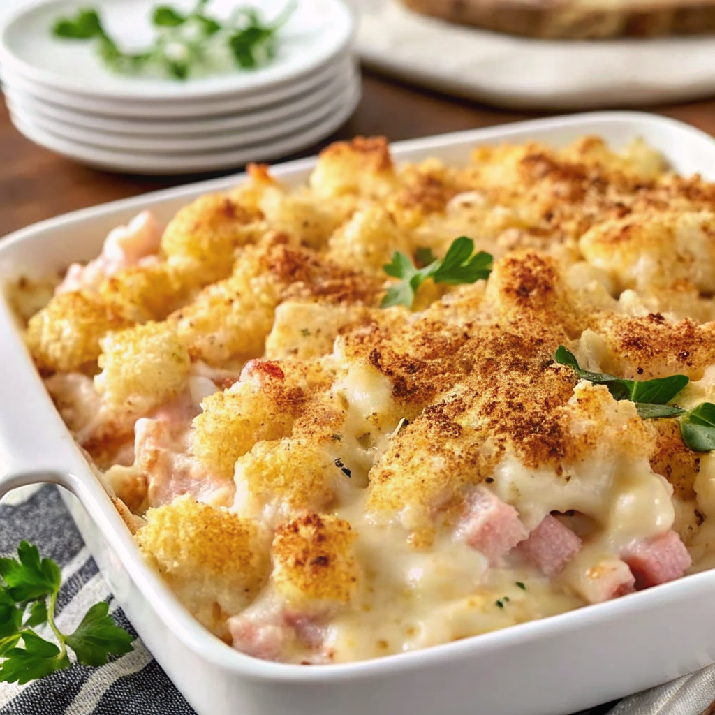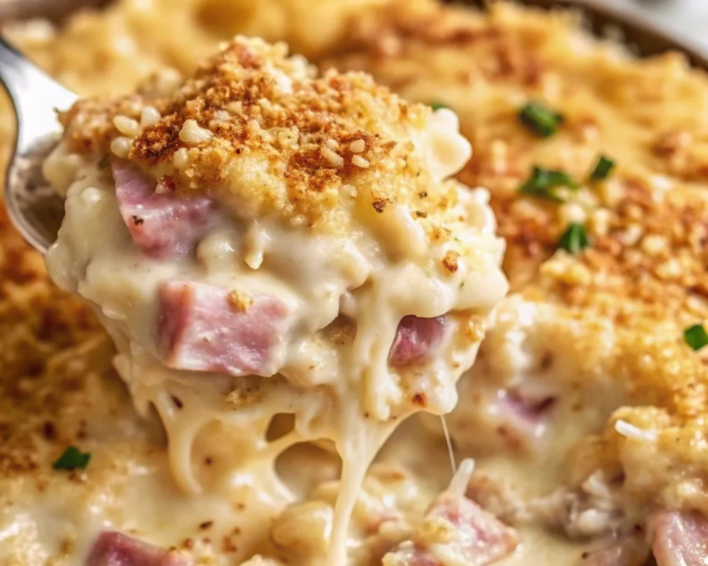 - Noodle Bake: Mix 8 oz of cooked egg noodles into the chicken and ham layers for a more “bistro-style” pasta casserole.