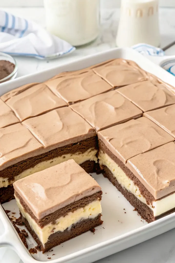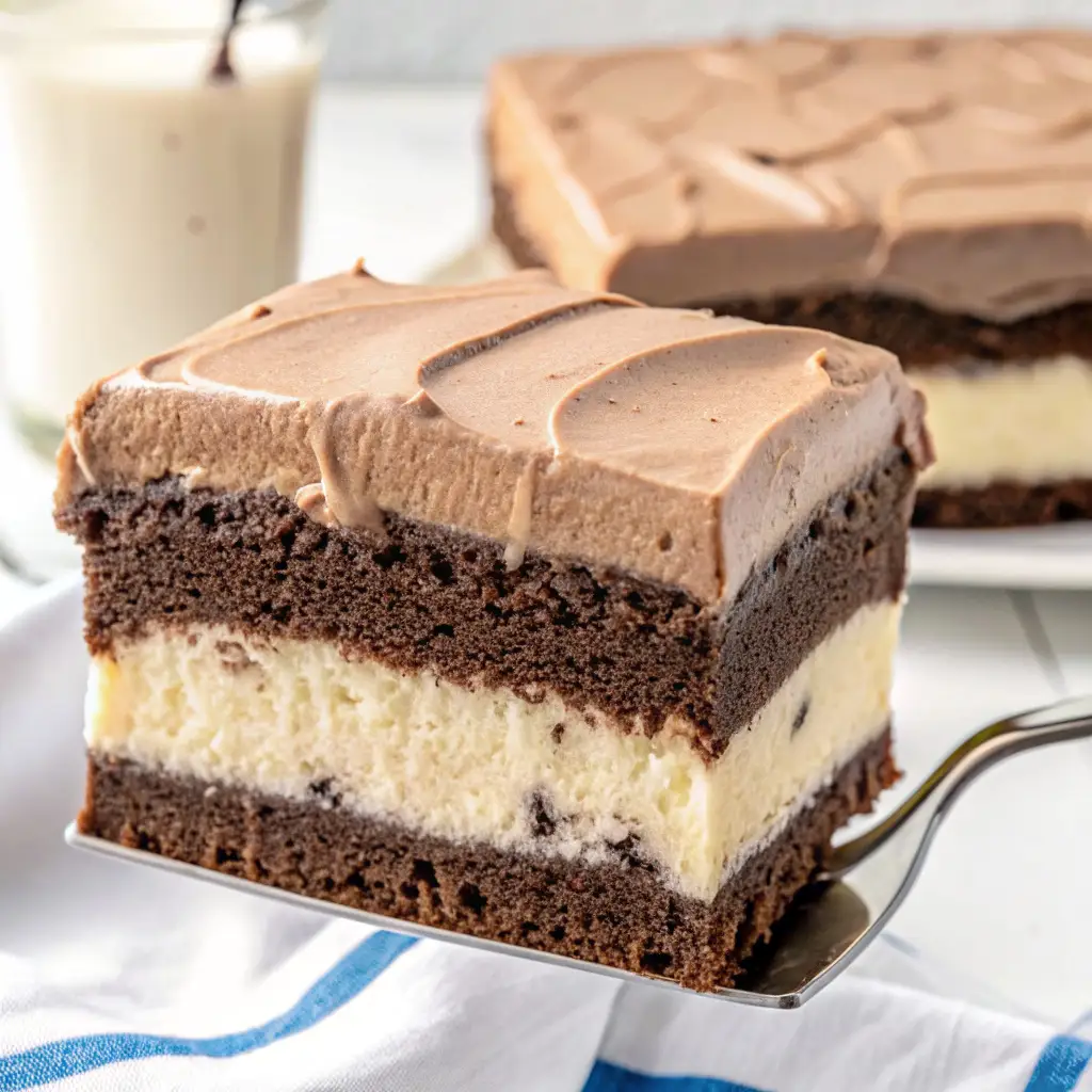 The Italian Love Cake is a beloved classic, earning its name because everyone who tries it falls head over heels! This spectacular dessert is famous for its unique structure: a moist, decadent chocolate cake base, a sweet, creamy ricotta filling that sinks to the bottom during baking, and a light, rich chocolate pudding frosting on top. Baked easily in a 9×13 pan, this is the perfect, fuss-free, make-ahead dessert for holidays, potlucks, or family gatherings.
