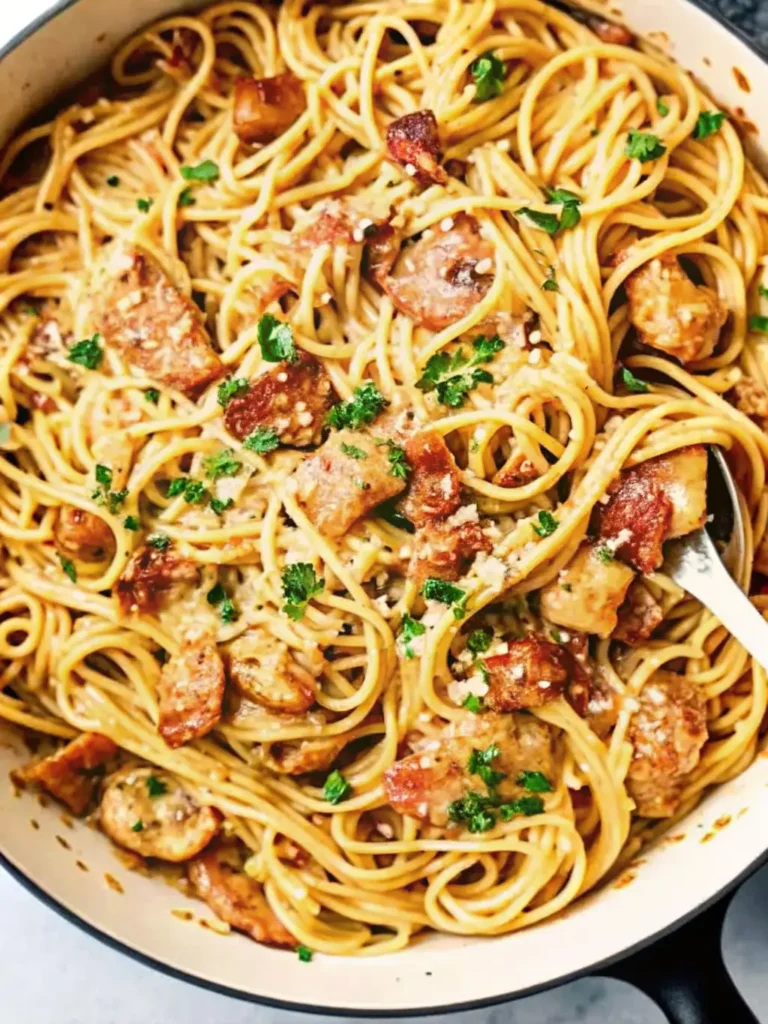 This Creamy Chicken Carbonara is the definition of comfort food fusion—a hearty, Americanized twist on the classic Italian pasta. We take the traditional Roman base of egg and cheese and fortify it with a touch of heavy cream, tender chicken, and smoky bacon to create a foolproof, velvety sauce that is utterly irresistible. This 30-minute pasta dinner is rich, savory, and satisfying, making it an ideal choice for busy families who crave restaurant quality without the hassle.