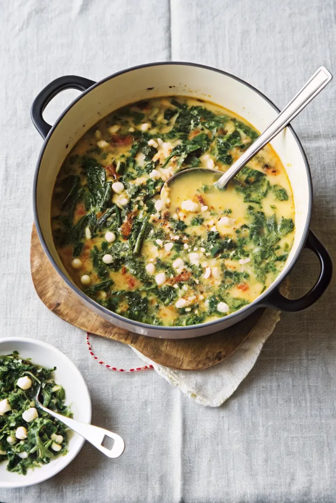 - Finish Greens and Season: Add the chopped kale to the pot and bring the soup back to a gentle boil. Once the kale is slightly wilted and bright green, season the soup generously with salt and pepper. Stir in the chopped parsley. Serve hot.