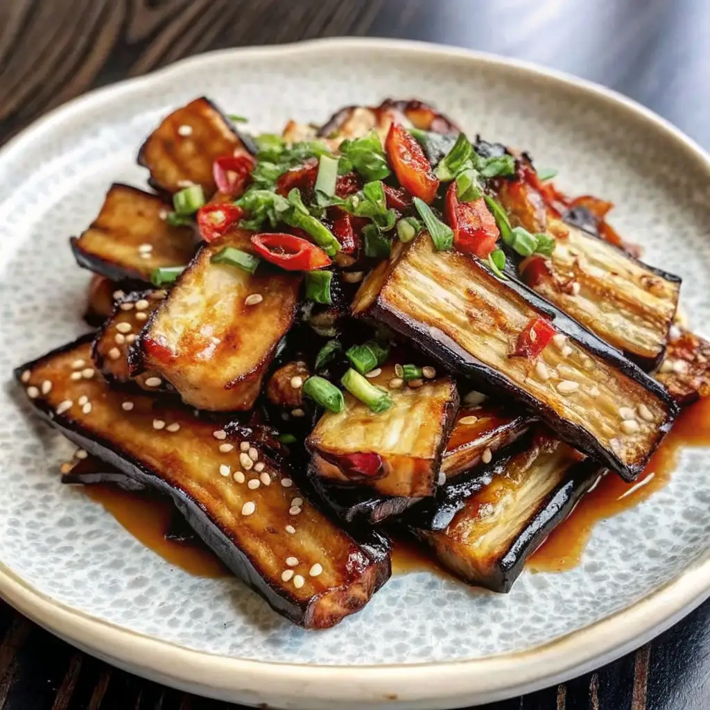 - Sticky & Savory: The glaze reduces into a thick, glossy lacquer that clings to every crevice of the eggplant.