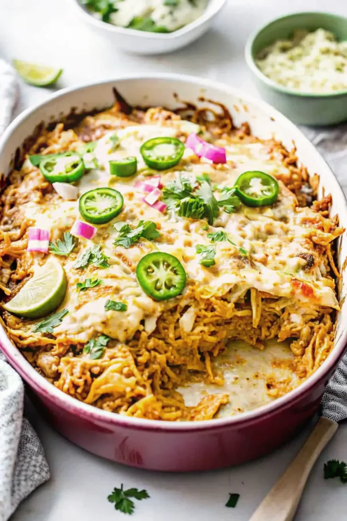 - Salsa Roja Swap: Not a fan of green sauce? Use a traditional red enchilada sauce or tomato-based salsa for a classic “Salsa Roja” casserole.