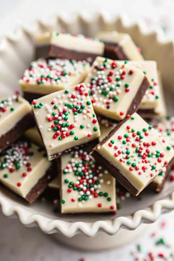 - Peppermint Fudge: Add ½ tsp peppermint extract to the chocolate layer and top with crushed candy canes