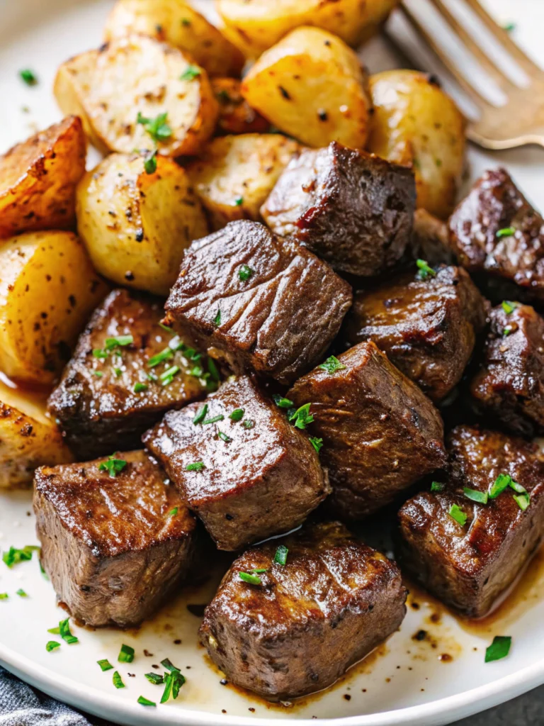 - Textural Perfection: Features crispy-edged baby potatoes and juicy, pan-seared steak bites.