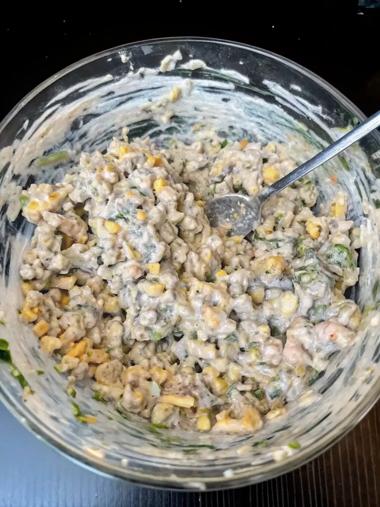 - Mix the corn with crema, mayonnaise, lime juice, chili powder, and a pinch of salt to create the elote salad.