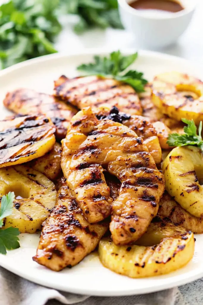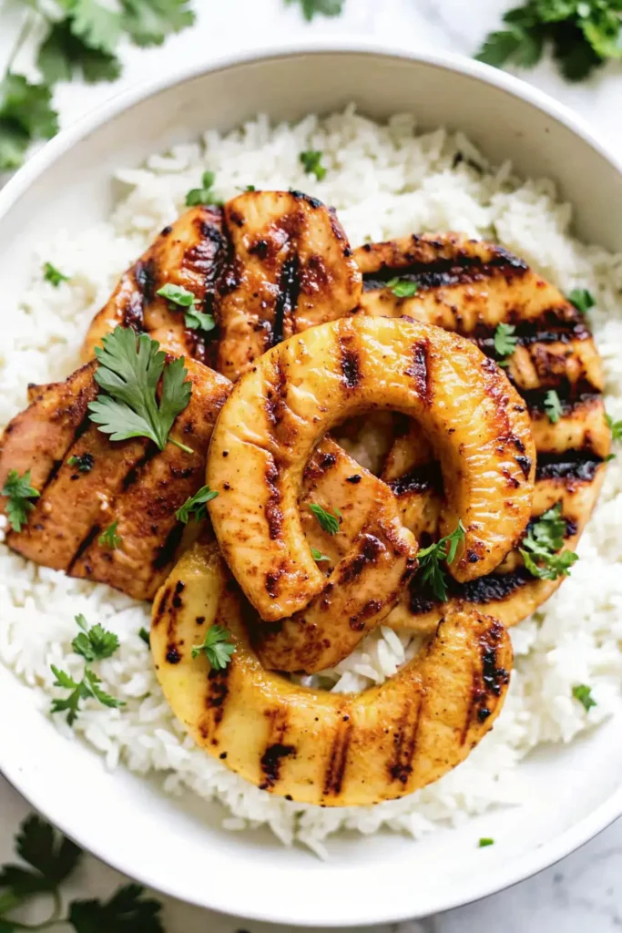 - Grilled Version: Grill the chicken and pineapple spears separately, then serve over the stovetop coconut rice.