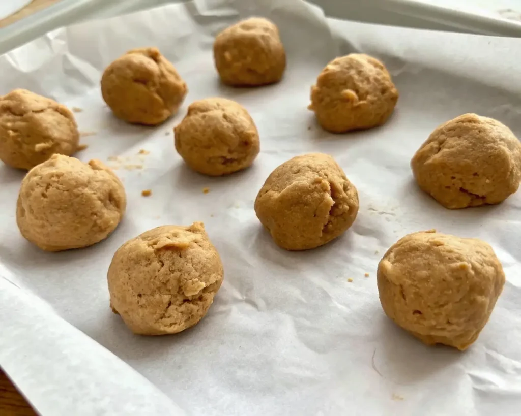 Line a small tray with parchment paper. Scoop about one tablespoon of dough and roll it into a smooth ball between your palms. Place the balls on the tray and freeze for 15–20 minutes until firm.