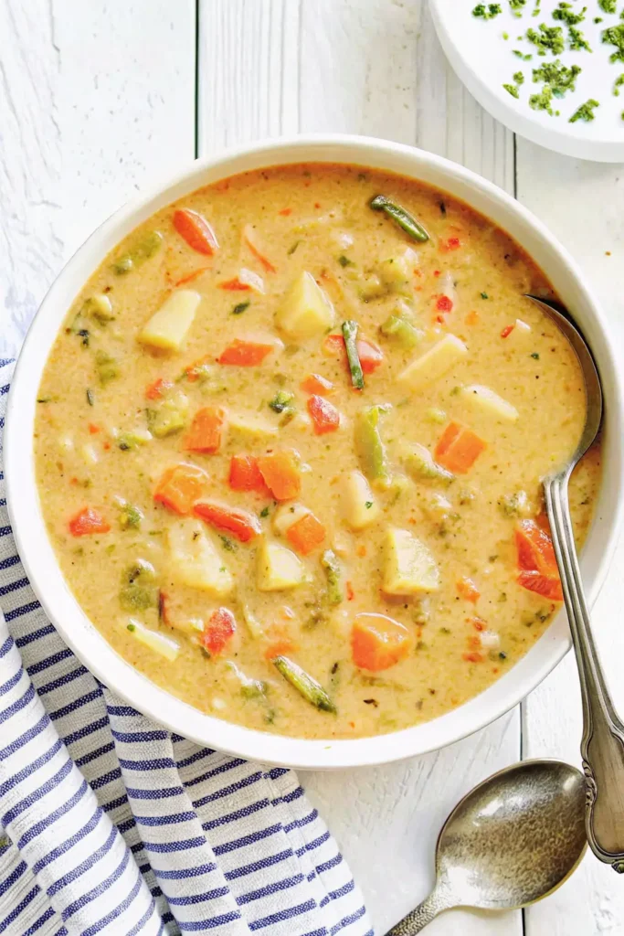 - Naturally Thick: Uses a light roux and Russet potatoes for thickening, relying on milk instead of heavy cream.