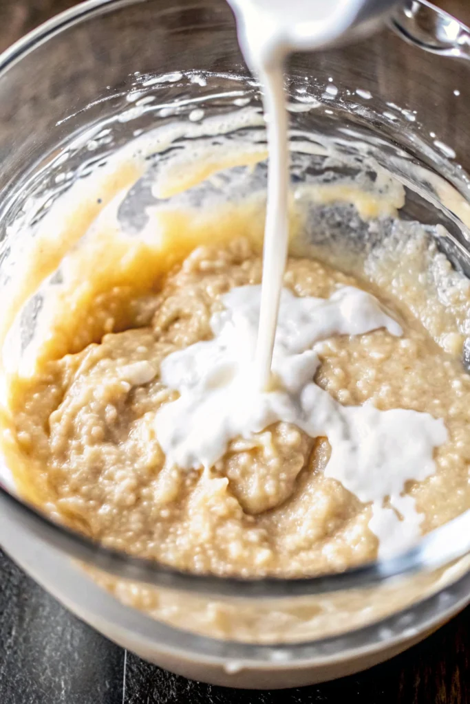 - The Tangy Prep: Preheat your oven to 350°F (175°C). In a measuring cup, whisk together the milk and vinegar. Let it sit for 5 minutes until it curdles into buttermilk.
