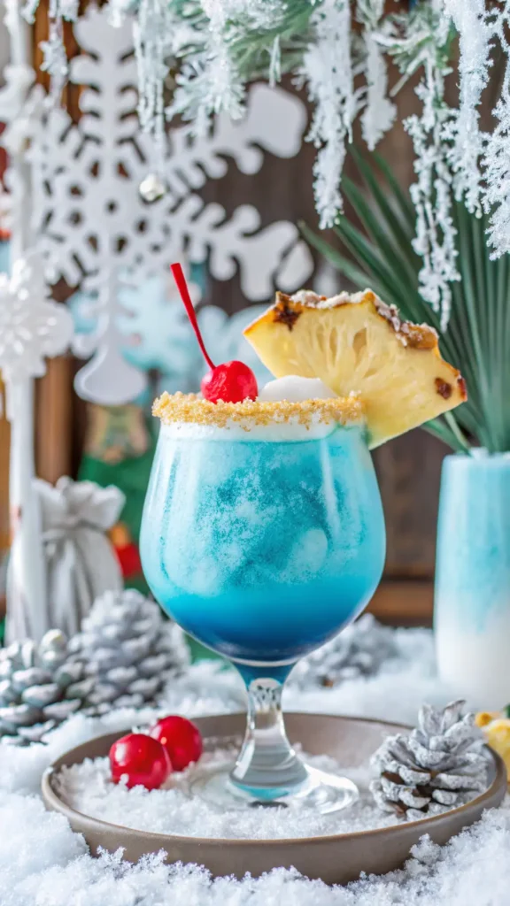 Holiday Parties: This cocktail is perfect for Christmas parties, New Year’s Eve celebrations, or winter birthday parties. The blue color and snowy rim fit the season beautifully.