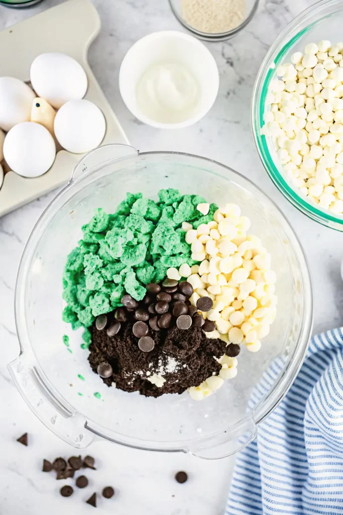 - Double Chocolate: Substitute ¼ cup of flour for ¼ cup of cocoa powder to make a dark green “Chocolate Oreo” version.