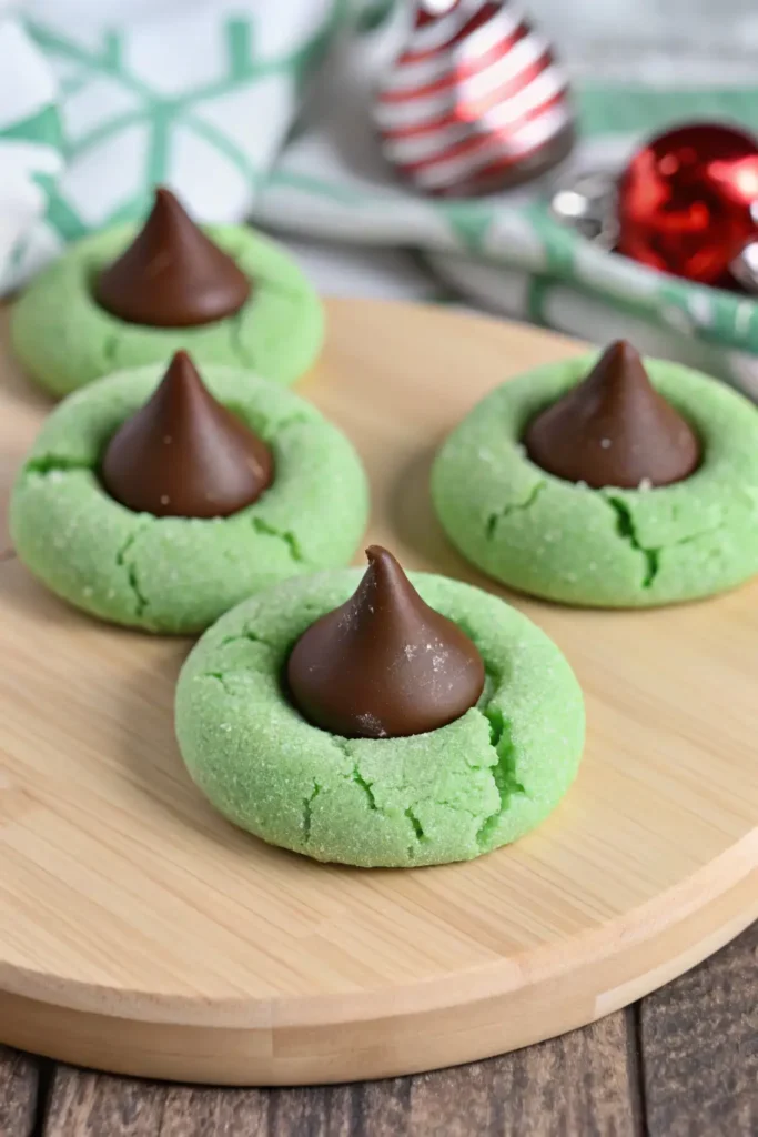 What makes these mint blossom cookies unique is their texture. Unlike some blossom cookies that can be dry or crumbly, these have a higher butter content and use powdered sugar in the dough, resulting in a “shortbread-meets-sugar-cookie” consistency. They are bright, festive, and require no rolling or chilling, making them a quick and easy win for your holiday baking list.