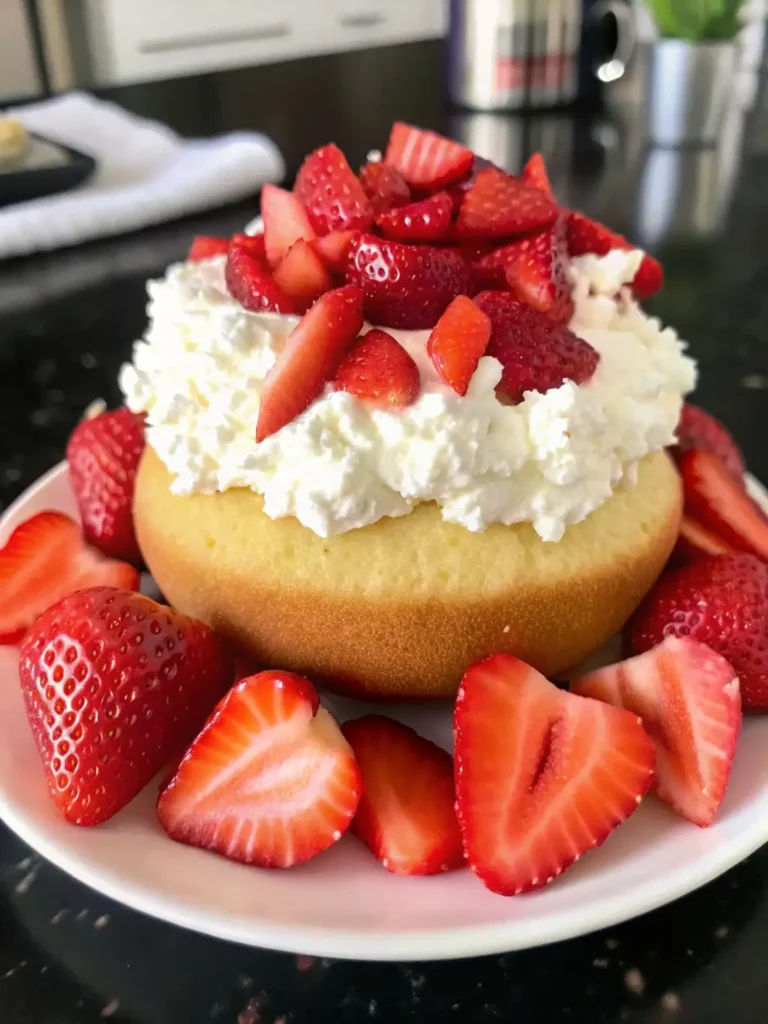 Q: Is this recipe very sweet? A: The cake itself is only mildly sweet, which is intentional! The sweetness primarily comes from the sugared strawberries and the whipped cream.