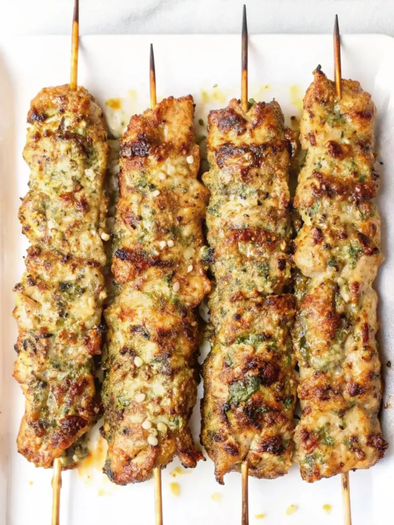 - Preheat grill to medium-high heat. Grill the skewers for 10–15 minutes, turning every 3–4 minutes, until chicken reaches 165°F (75°C) and has grill marks. Rest 3–5 minutes before serving.
