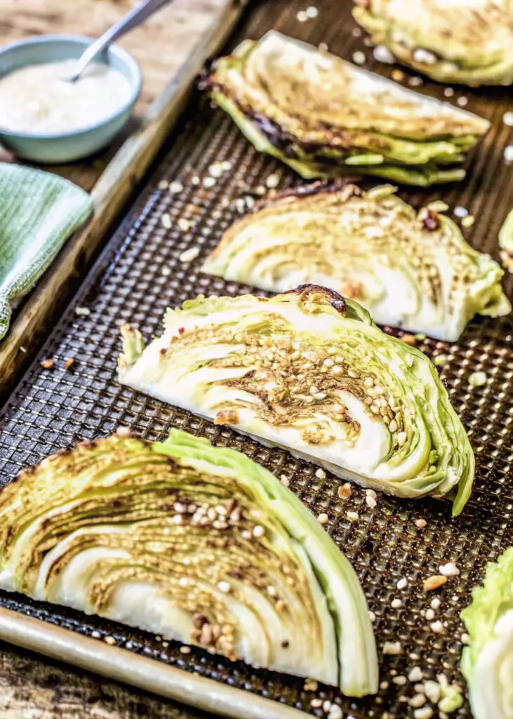 Step 7: Bake and Cool (Rest) Bake until the edges are dark golden and the centers are tender. Allow the cabbage to rest on the pan for 2 minutes before transferring to a platter. Drizzle with fresh lemon juice to finish.