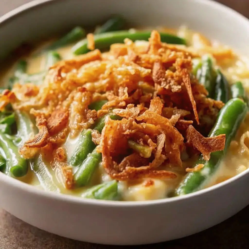 How do I keep the fried onions crispy? Always add them after baking, not before. The heat from the casserole will warm them without making them soggy.