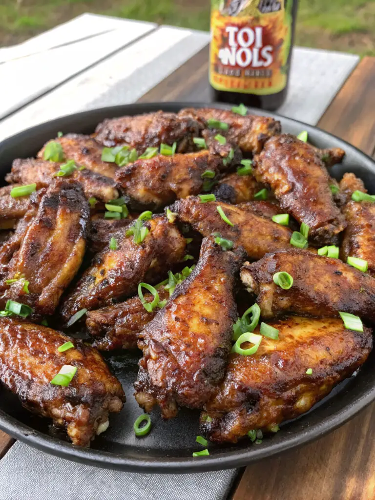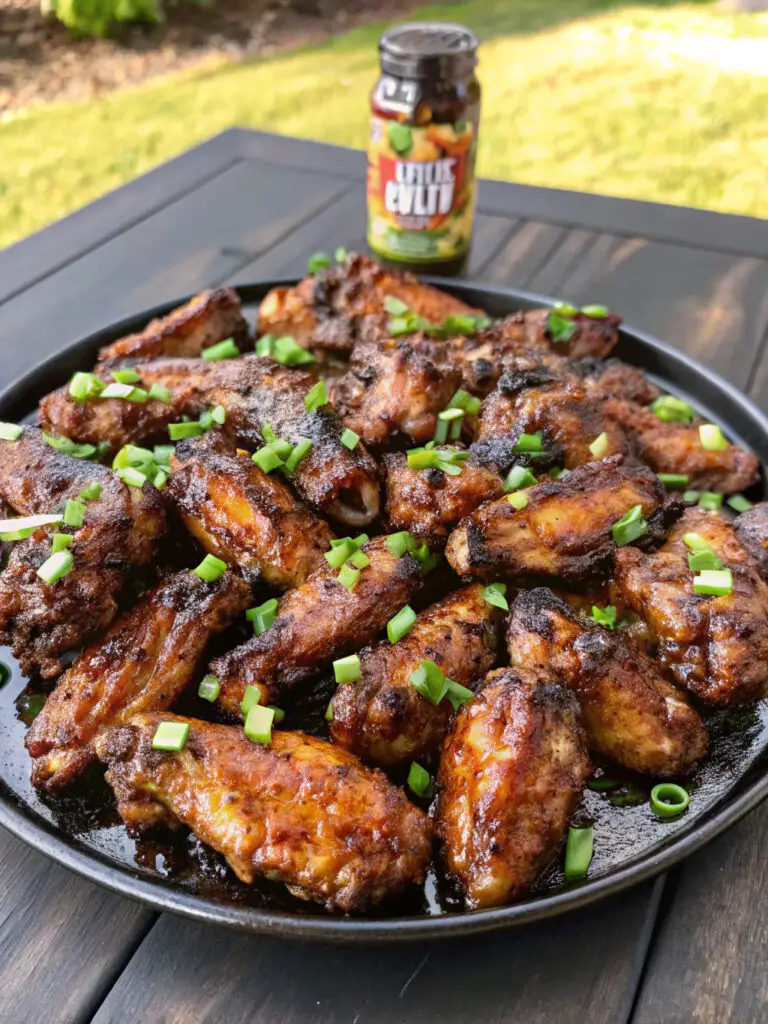 Step 7: Plate and Serve Arrange the wings on a platter and allow them to rest for 2 minutes. Top with fresh green onions. The contrast of the green against the amber-charred wings creates a beautiful finish.