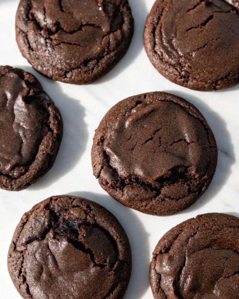 Step 7: Cool and Serve Allow the cookies to cool on the pan for 10 minutes. This final rest is the best way to allow the “crackle” to fully develop. The contrast of the shimmering skin against the dark fudgy interior creates a beautiful finish.