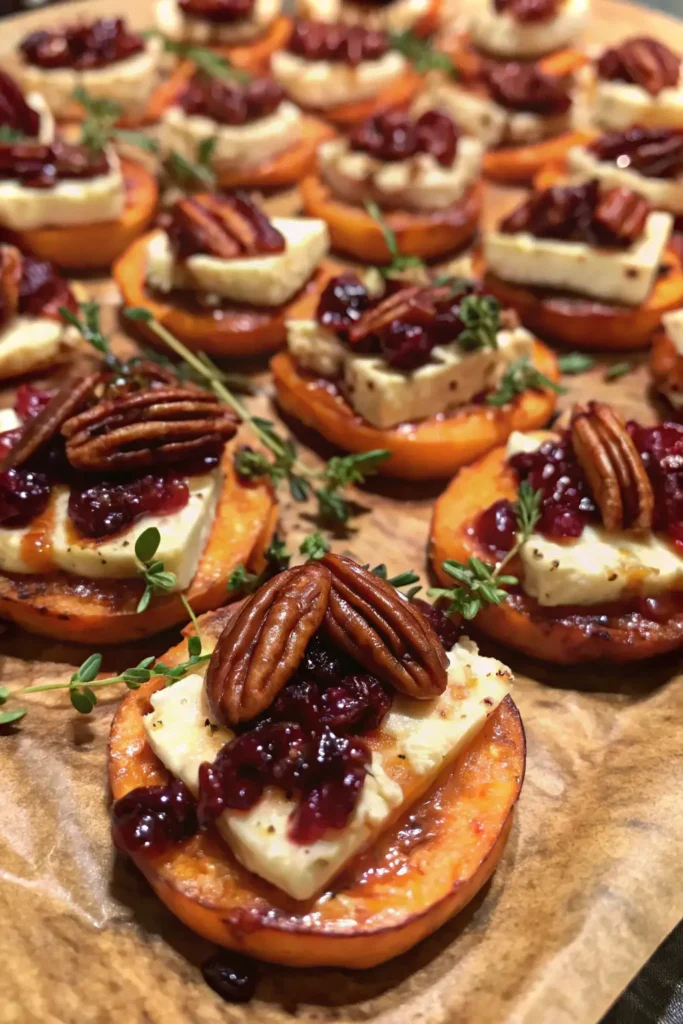 Sweet Potato Rounds with Brie, Cranberry & Pecans