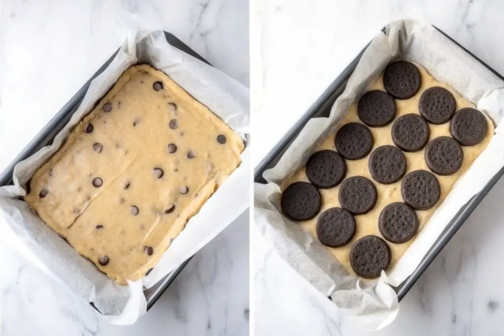Step 4: The Pour (Crucial Step) Pour the brownie batter over the Oreos. Use a spatula to spread it gently—just enough until swirls of batter cover all the cookies. This is the key technique for achieving stunning marbled depth.